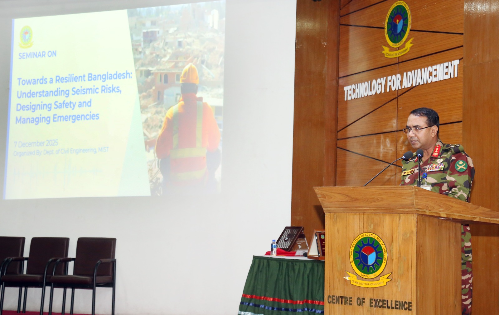 The second day of CEnertia 25, organized by the Department of Civil Engineering at MIST, became a profound and thought-provoking gathering centered on Bangladesh’s journey toward earthquake resilience. The seminar, titled “Towards a Resilient Bangladesh: Understanding Seismic Risks, Designing Safety and Managing Emergencies,” brought together students, faculty members, and professionals for an inspiring exchange of ideas and responsibilities. The event was graced by Maj Gen Md Hasan Uz Zaman, ndu, afwc, psc, MPhil, Engineer in Chief, Bangladesh Army, who attended as the Chief Guest. In his remarks, he highlighted the urgency of building a disaster-aware nation and reminded the participants that engineers are entrusted with safeguarding lives through informed decisions, responsible design, and unwavering dedication.