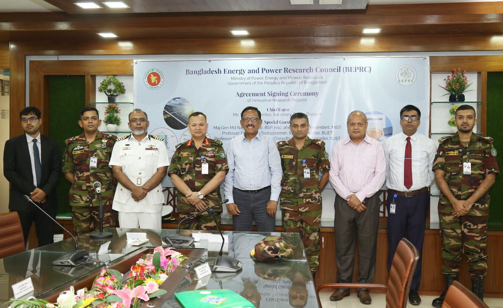 On 29 September 2025, the Bangladesh Energy and Power Research Council (BEPRC) signed a research agreement with the Military Institute of Science and Technology (MIST) for the project titled “Development of an Artificial Intelligence Enabled Digital Twin of a Solar Photovoltaic Plant to Enhance Renewable Penetration in the Power Grid of Bangladesh” with a research budget of BDT 1.63 Crore. The research team includes Maj Moazzem, Maj Naim , Asst Prof Ahsan , and Asst Prof Monir . The signing ceremony was attended by the Senior Secretary (Chairman, BEPRC), Secretary (Power Division), Commandant (MIST), Chairman (PDB), Chairman (SREDA), Members of BEPRC and BERC, and distinguished professors and researchers from BUET and SUST.