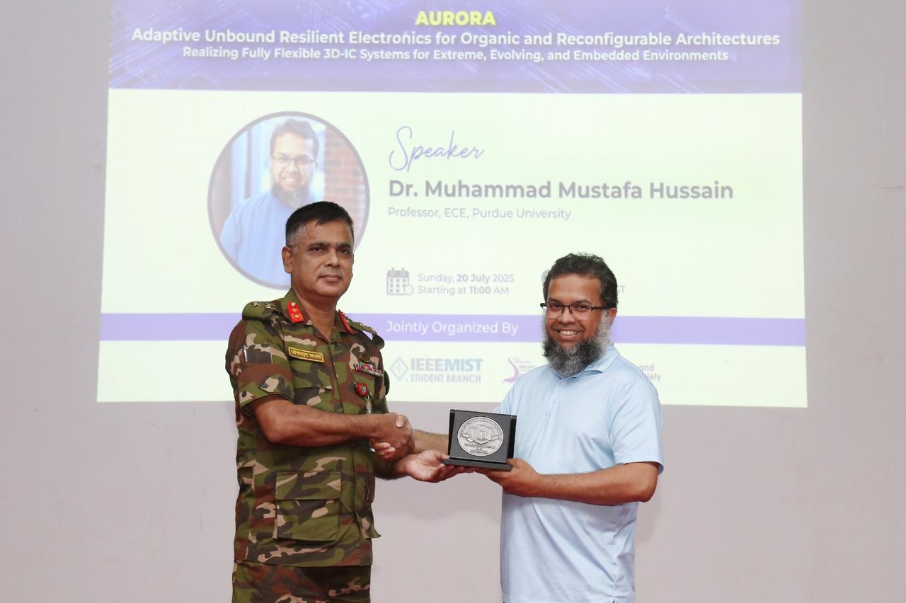 Military Institute of Science and Technology (MIST) proudly hosted a visionary technical session on 20 th July delivered by Prof. Dr. Muhammad Mustafa Hussain from Purdue University, a distinguished Fellow of IEEE. The session focused on AURORA—Adaptive Unbound Resilient Electronics, presenting a transformative outlook on the future of flexible 3D-IC systems and their far-reaching applications in healthcare, aerospace, and sustainable technologies.